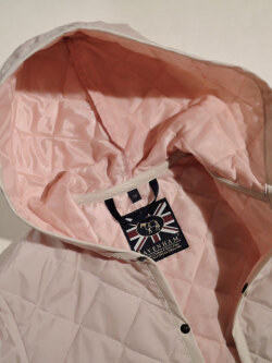 ラベンハムの春夏用キルティングジャケットをご紹介します。モデルはフード一体型のショートタイプ、「CRANLEY・クランレイ」。現行にはない、廃版モデルとなったデッドストック品です。 ブランドのイメージは秋冬ですが、中綿の量を調整して、薄く、軽く、着ていないようなライトウエア。コーデュロイのパイピングもありません。なかでもコチラは珍しいツートーン仕様。淡いベージュにアプリコットが女性的。すっきりコンパクトなサイジングは今となっては希少種。価格も大変魅力的!
