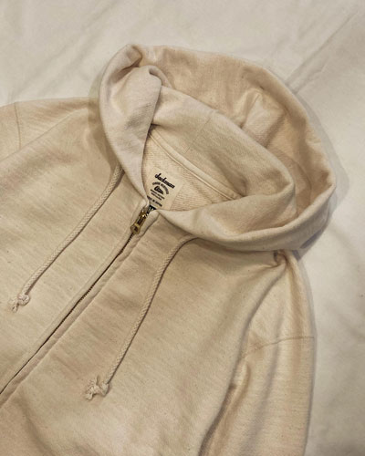 Jackman,ジャックマン,JM7293,04Kinari,GG Sweat Parka,スウェット,ジップパーカ, / 太番手の国産糸で杢感を際立たせて編み立てたGG(ガラガラ)裏毛素材のスウェット。 スウェットらしい独特の肉感と肌触りで、一段上のリラックスカジュアルウェアーとなっております。 パーカーはアームホールから袖先にかけてテーパードされたスッキリしたシルエット。 ダブルフルジップのフロントで、単体でインナーにも、ジップの開閉でアウター的に羽織りアイテムにもなる万能型です。