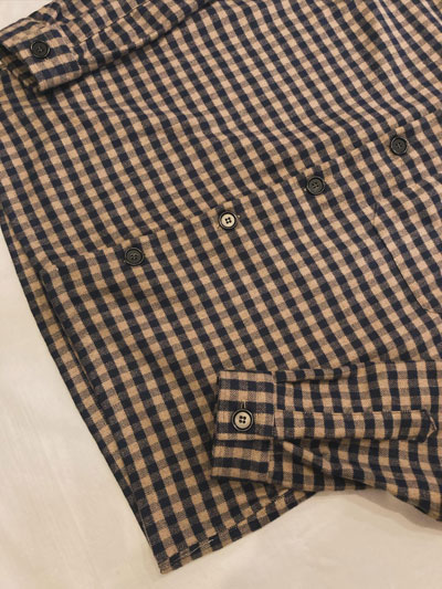 GUY ROVER,ギ ローバー,GR136,Cotton Flannel Shirt Jacket,ネルチェック,シャツジャケット, / イタリアン・シャツメーカーが作るアウターとしてのフランネルシャツ・ジャケット。 通常カジュアルなアイテムのネルシャツながらイタリアブランドらしい上品な気品のあるスタイルが大人の印象を受けます。 素材感は肉厚で温かな起毛感のあるイタリア産のコットンネル生地。 カジュアルながらもオトナ感のあるキャメル×ネイビーのチェック柄に大振りのボタン、高級感ある素材感とシャツジャケットとしてのデザイン性が相乗効果でスタイリッシュな大人カジュアルのスタイルを出しています。