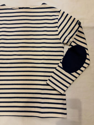 SAINT JAMES,セントジェームス,OUESSANT,ELBOW PATCH,ウェッソン,エルボーパッチ, / セントジェームスの定番 OUESSANT/バスクシャツの、不定期にリリースされる肘パッチのモデル。 ボートネックスタイルの定番モデルに同素材でヒジ当てパッチを施し、定番モデルにひと味のアクセントをつけています。 肘パッチモデルは不定期リリースの上、配色もランダムなのでコレクション性の高いアイテムとなっています。