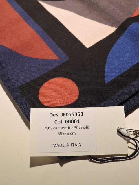 ブルーを基調とした総柄の65cm正方形スカーフです。絶妙な配色や発色はイタリアブランドらしさが光ります。首元を華やかに彩り、薄くてもあたたかく、柔らかい質感が特徴です。バッグのアクセントにも、ヘアアクセサリーにも、用途はそれぞれ。ユニセックスでご使用いただけます。