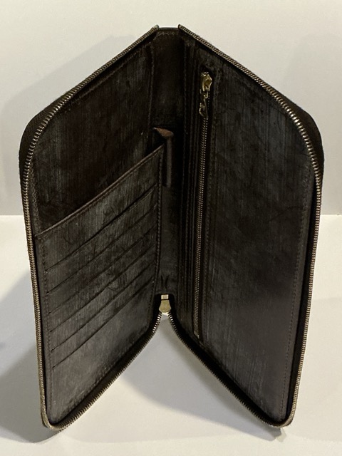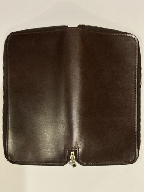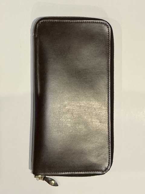商品説明: 一般的な長財布より、ひとまわり大きいサイズの『トラベル・ウォレット(ラウンド・ジップ・タイプ)』。ブランド定番のブライドル・レザー(堅牢で型崩れしにくい良質な革にするために、原皮を『植物の樹皮から抽出したタンニンの溶液』に長期間じっくりと浸け込んだ後に『牛脂や蜜蝋』を手作業で染み込ませ仕上げた革。)を贅沢に使用した長財布は、『紙幣』『コイン』『カード』の他に、『ペン』や『パスポート』などの収納も可能な設計になっています。所持品の物量次第で、『小ぶりなクラッチ・バッグ』として使用しても見映えのするデザインです。
