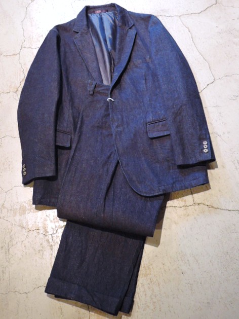 商品説明: 着込んで洗ってワークウェアのような扱いでエイジングも楽しみなデニムスーツ"Brooklyn"のトラウザース。国産デニムのヴィンテージ紡績機『石川製作所』の世界で4台しか存在しない、とても希少な旧式シャトル織機「888 three eight」で織り上げたデニム生地。 ローテンションでゆっくり織り上げるとヴィンテージデニムにみられる特有の豊かな表情が生まれます。染色にはピュアインディゴを採用し、着込むほどに鮮やかな青へと育つ色落ちを楽しめます。オンスは11.2。ミリタリーチノに通ずる武骨な太さとトラウザースの端正さを併せもった一本。予め裾はダブルで仕上げてありますが、お好みでシングルやタタキ(ステッチ)に変更も佳いかと。