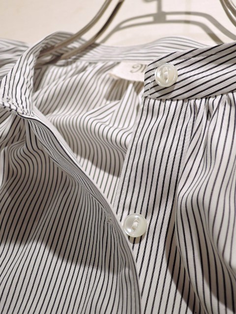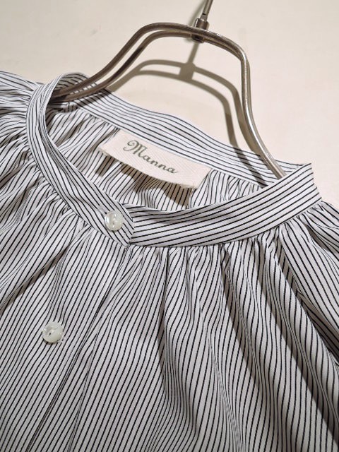 製品名: Manna マンナ コットンポリエステル スタンドカラー ギャザーシャツ STRIPE