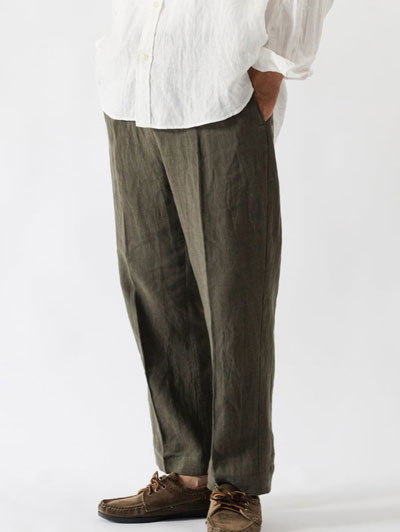 商品説明: DELICIOUS,デリシャス,DP83083,LINEN Easy Pants,リネンイージーパンツ,STUDIO ORIBE,スタジオオリベ, / 高品質で知られるフレンチリネンを活かすべく染色方法や仕上げにこだわり、上質な光沢感と軽くてゆったりした穿き心地、サラッとした肌触りが清涼感をもたらせるイージーパンツ。 リネン特有の洗い晒しのシワ感によるカジュアルな着こなしは勿論、フレンチリネンの上質な質感はセンタープレスをアイロンする事で上品な着こなしにも対応できるパンツに仕上がっています。 たっぷりとしたヒップ周りのゆとりとふんわりしたシルエットは、ユニセックスなスタイルで女性のご着用もお奨めの、男女問わず共有頂けるイージーパンツです。