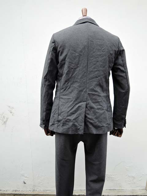 商品説明: 人気のポリエステルシリーズ。 その魅力はリーズンレスであることと、このシワ感。 ジャケットながら堅苦しさは殆どなく、扱いも容易。 むしろシワになって良いんです。 ジャケットと共地のパンツもご用意しております。 スーツまでキッチリしない、セットアップの着方もお楽しみいただけます。